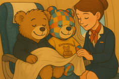 Timmy und Kuni fliegen wieder nach Hause. Sie nehmen viele schöne Erinnerungen mit, die sie am Abend mit ihren Freunden zuhause teilen. Sie haben auch viele Geschenke mitgebracht.
